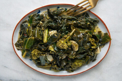 Kale! This popular leafy green is rich in calcium, iron, vitamin K, and vitamin C, to name a few. When eating it raw, it’s always best to massage it with some oil and salt to make the texture less fibrous and more pleasant.