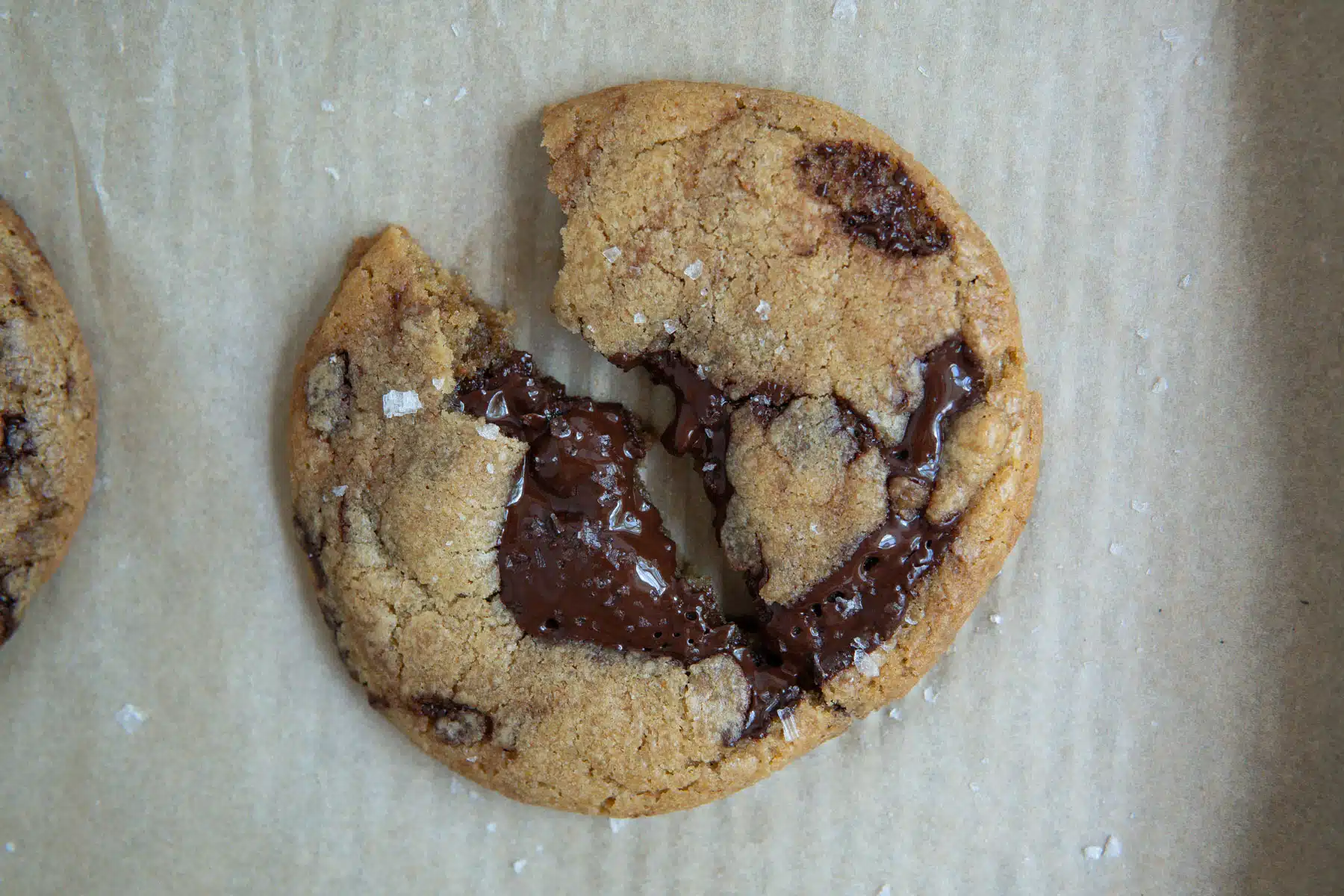- Remove the baking sheet from the oven, sprinkle with flaky sea salt (if using), and allow the cookies to cool slightly before serving.